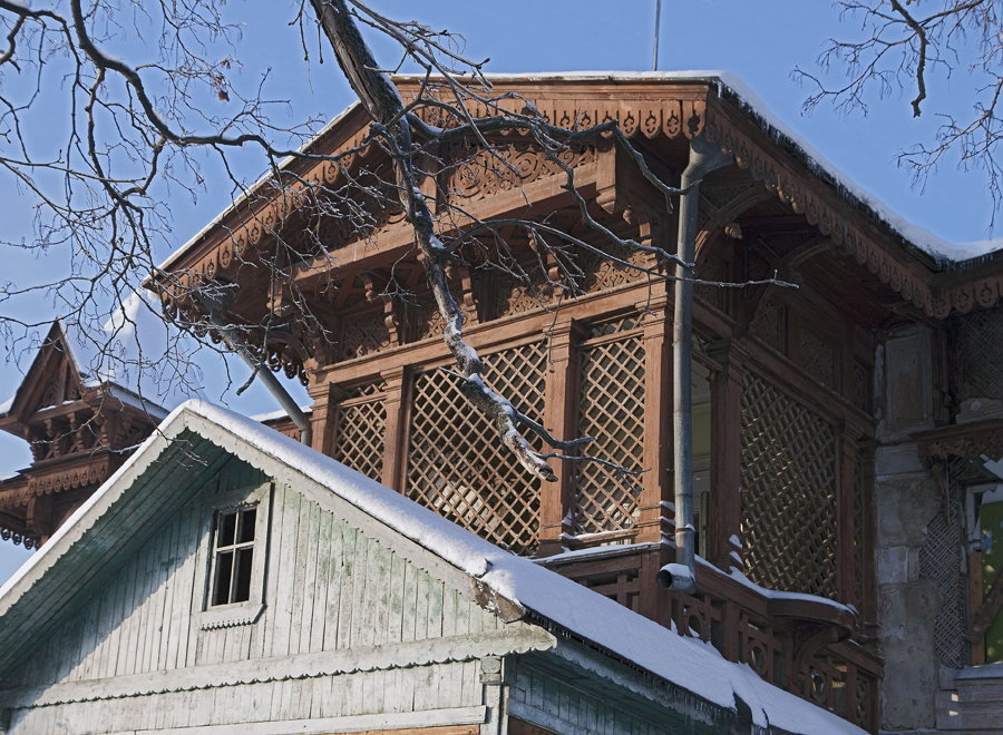 | Первый этаж - каменный. Второй — деревянный, с декоративной башенкой. |